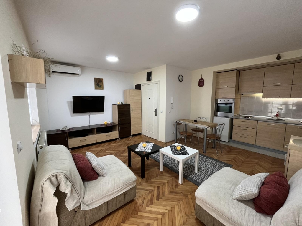 U Centru grada - Dve odvojene sobe, funkcionalan i kompletno namešten i sredjen stan, velika otvorena i prostrana dnevna soba sa kuhinjom, odvojena manja spavaća soba, kupatilo i velika terasa. Atraktivna lokacija, Crveni Pevac - na raskrsnici ulice Vožda Karadjordja i Vojvode Mišica kod semafora. Visoko prizemlje, miran stan, zaštićen od buke. Centralno grejanje. Troškovi minimalni. Telefon: 063 7683 881
